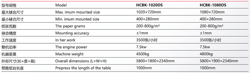 HCBK-1020/1080DS自動單工位+收紙卡紙裱合機,底紙采用PLC控制的飛達輸送機,使輸紙過程平穩準確,底紙上膠部根據不同紙張的要求,在不停機狀態下來調整膠水涂布量,提高工作效率。底紙通過側拉規定位進入復合輥裱合,初壓合后再經過多次液壓壓合輥輸出,成品進入收紙機。